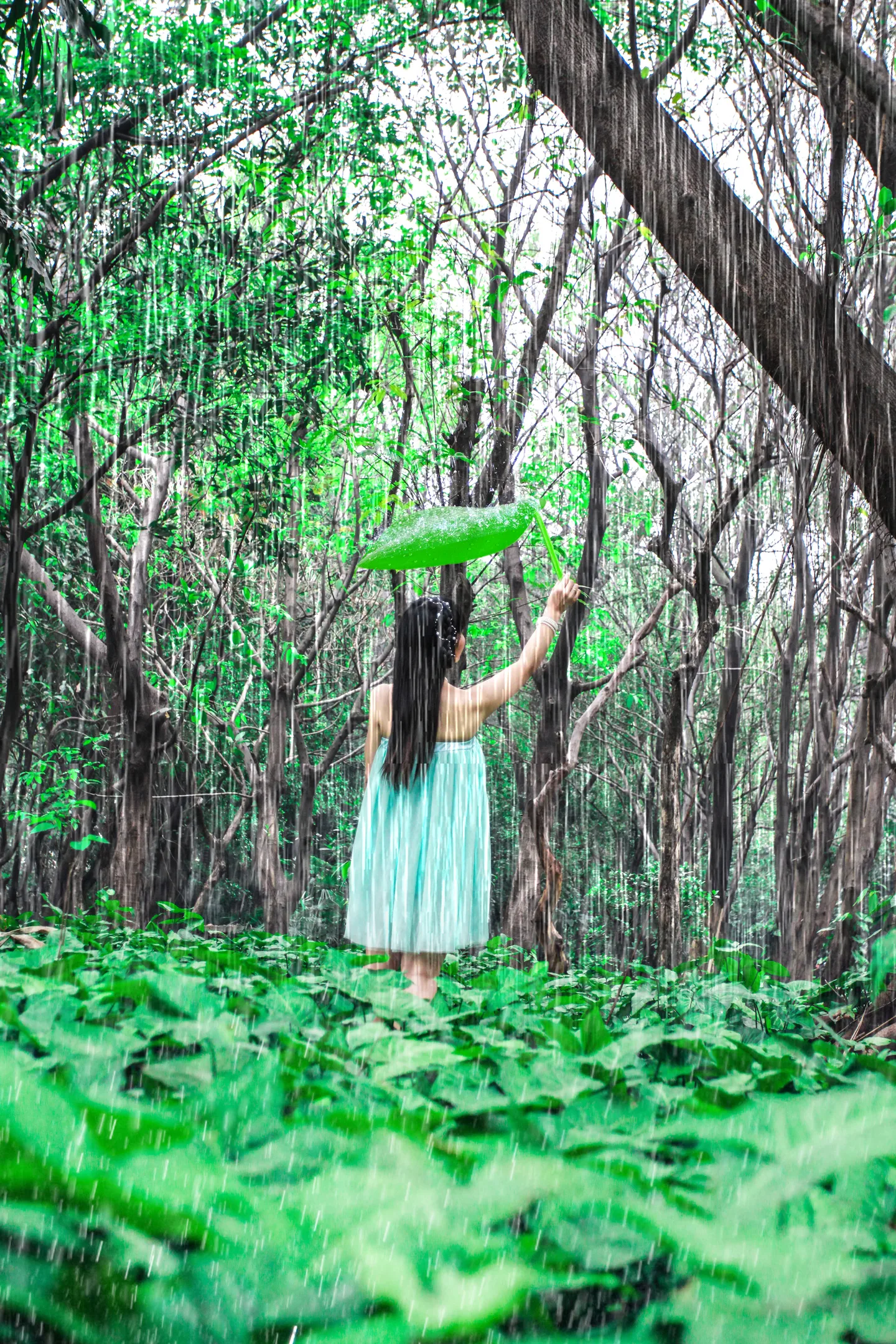 加了荷叶和雨,意境一下变美好了