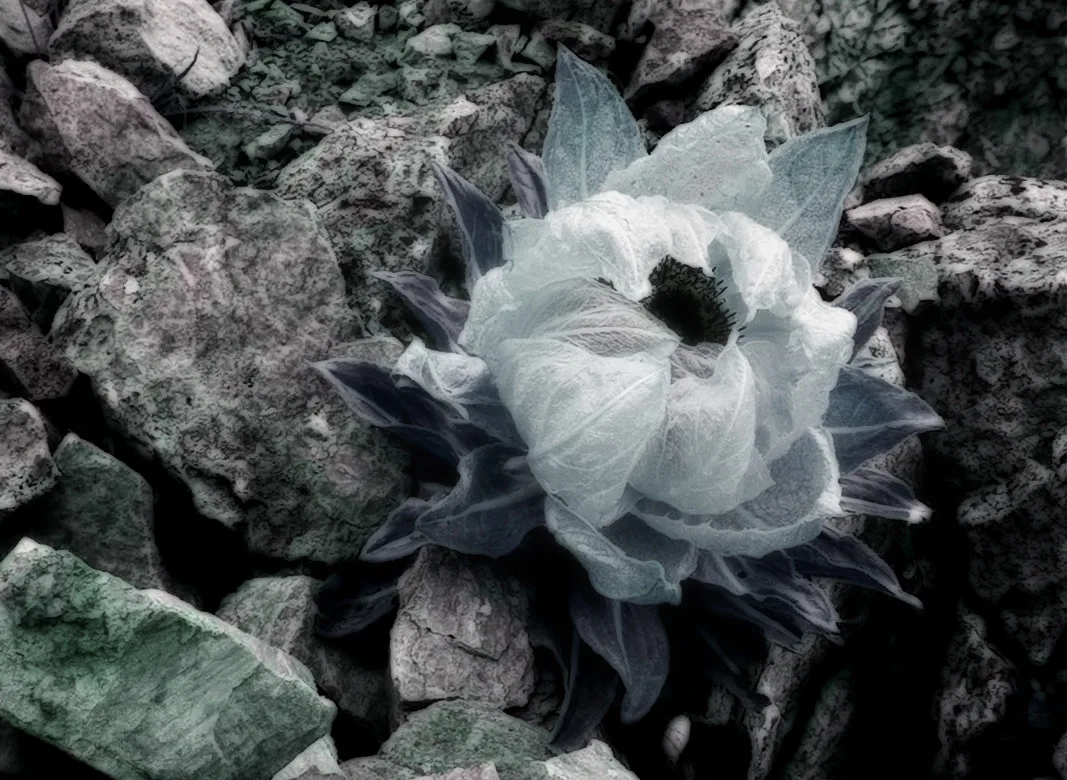 雪莲稍微放大处理,使其看起来更加圣洁、顽强,石头背景面积减小