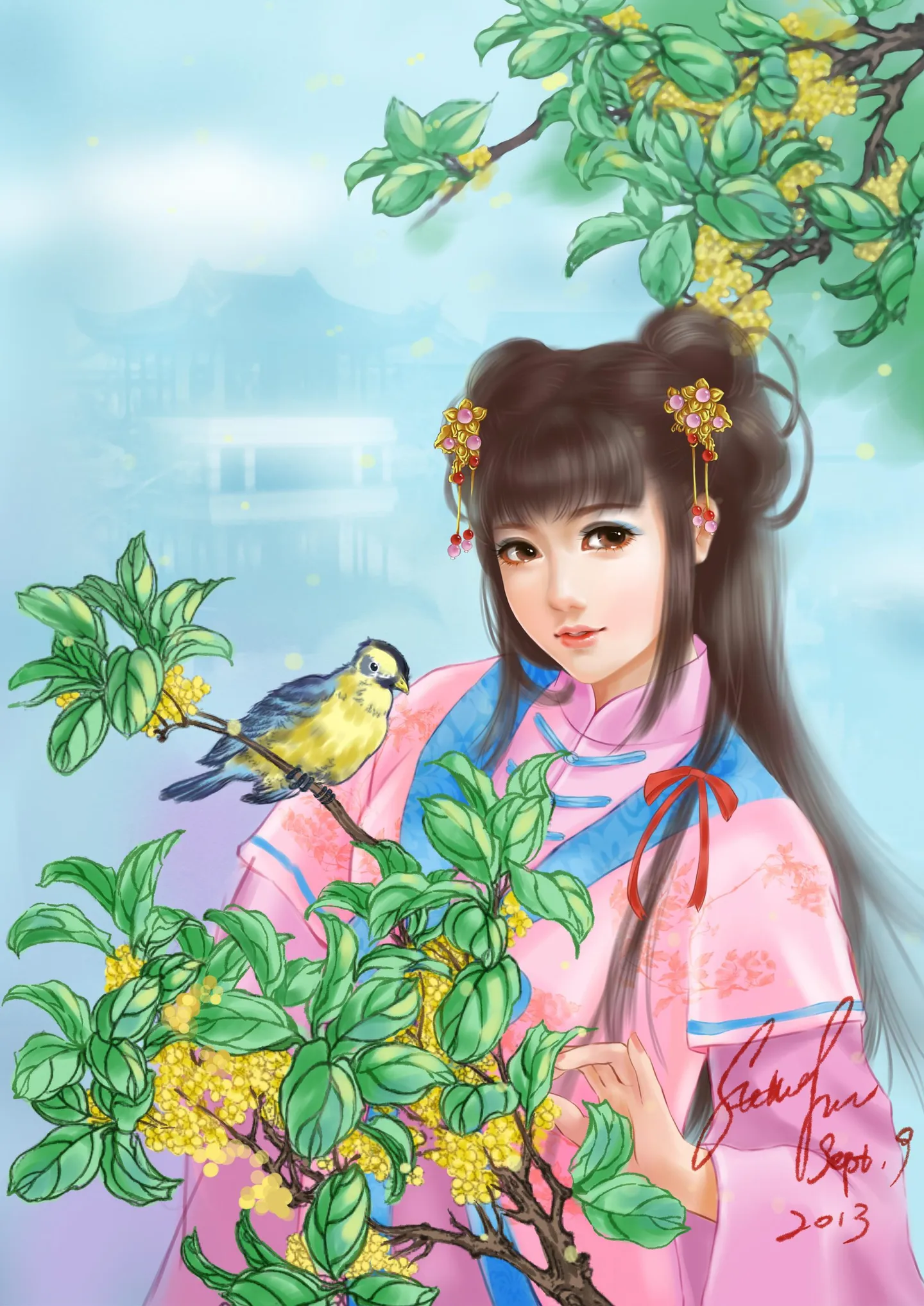 妹子很可耐啊,就是叶子的色看起来有点脏了,很不错