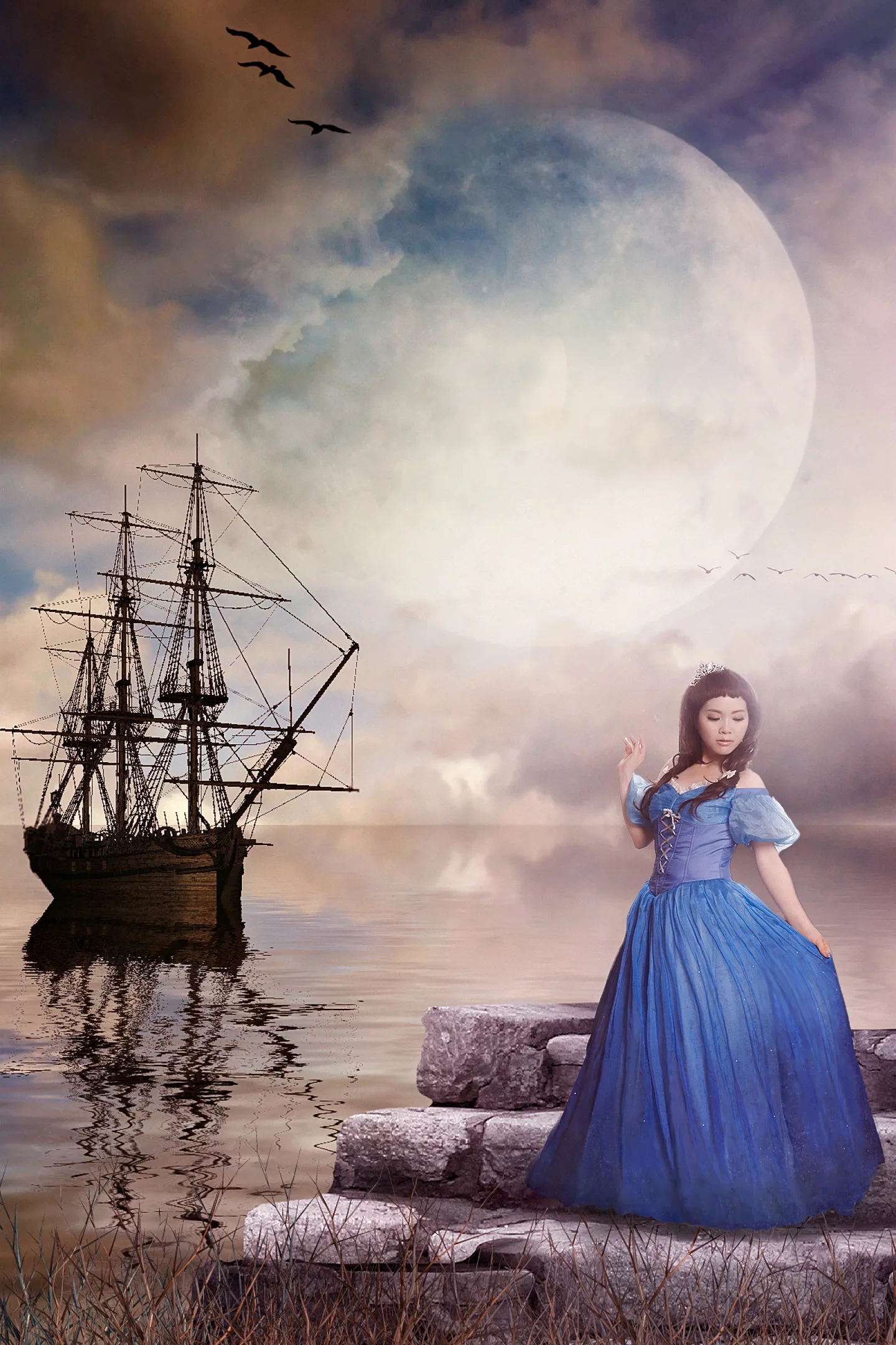 背景美美的,谢谢。不过裙摆有点不太自然呢,能不能帮忙再处理一下呀