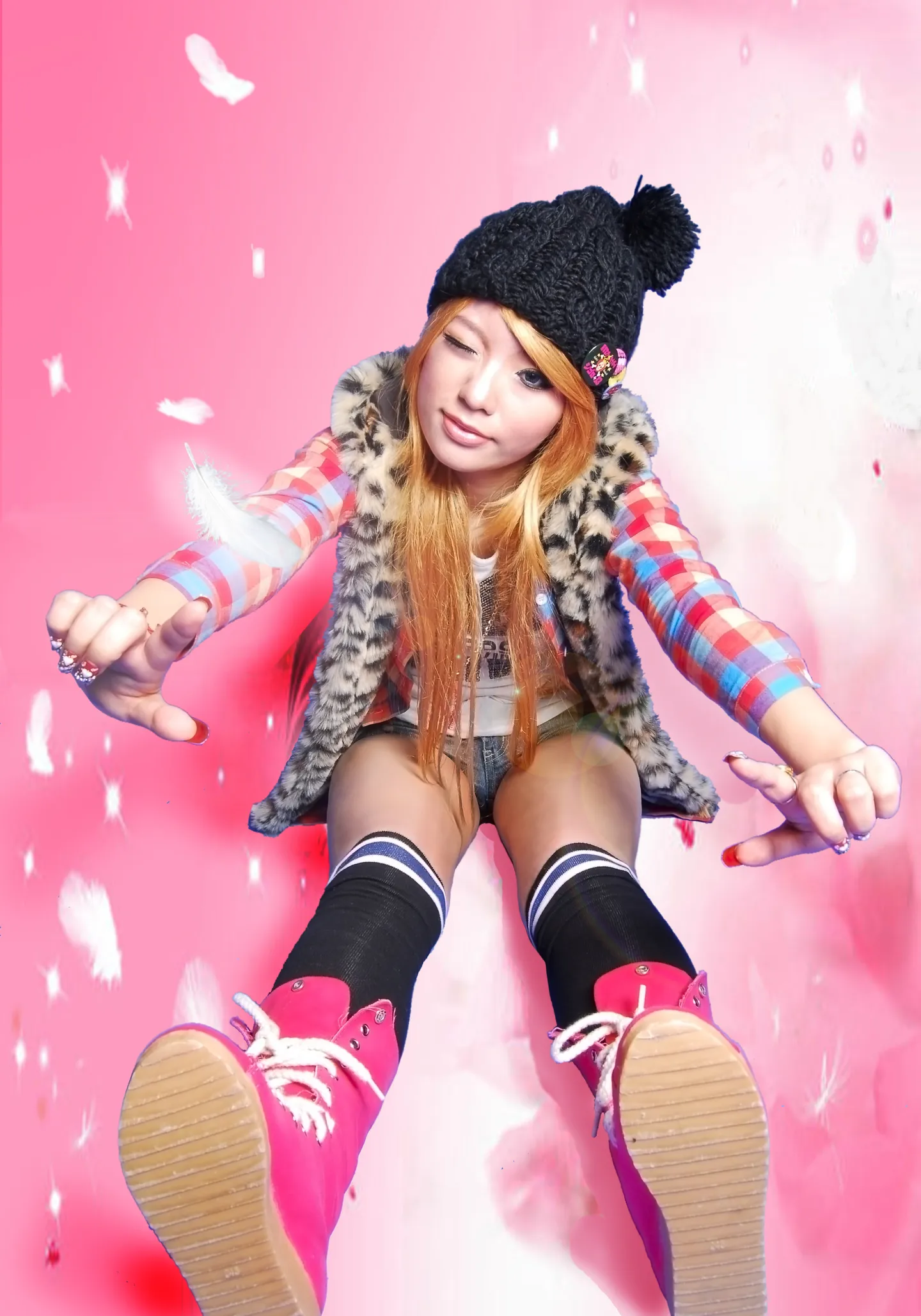 =.=看到杯具的肉腿木有? 恩,处理掉它 其实是想要卡通的效果 不过换背景也成 美化身材/体型 给人物换一个好看的背景 基调:欢悦明快的