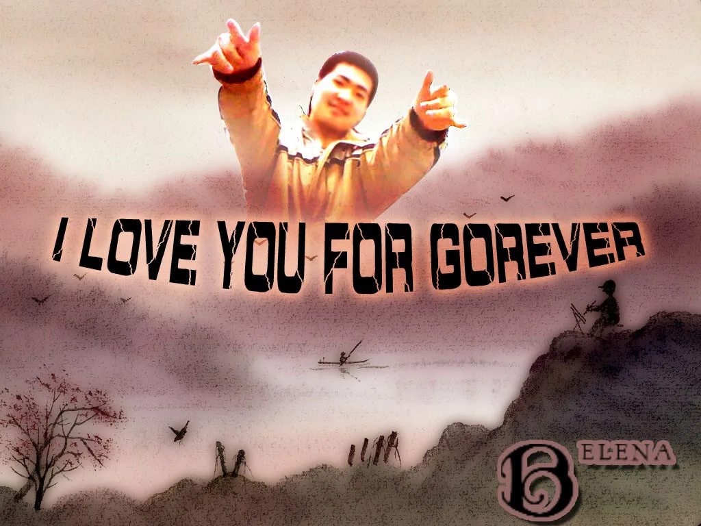 把旁边的人都去掉 换个有意境的背景~~~脸搞模糊一点(不是很帅 o(∩_∩)o...)加几个字:I love you forever OK好了就这样 谢谢了