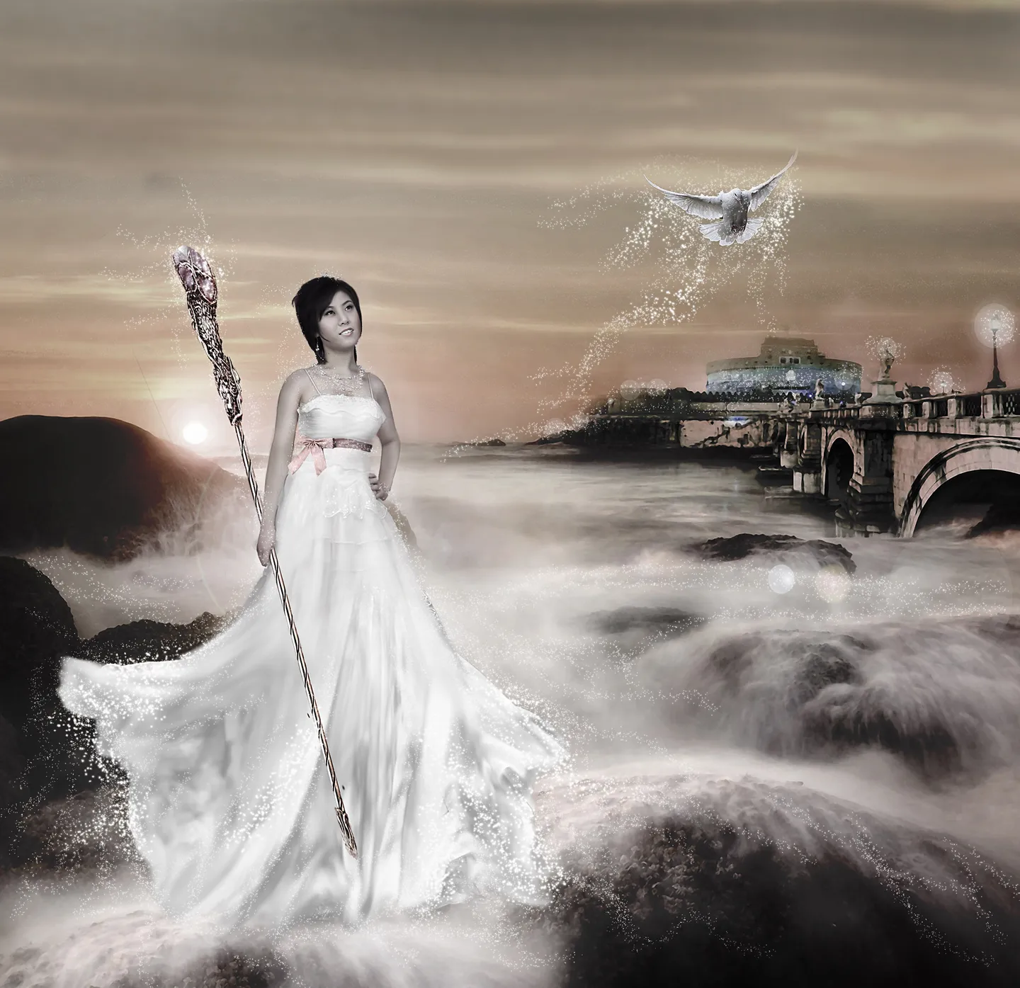 是一张艺术照希望加一些背景,浪漫一些的