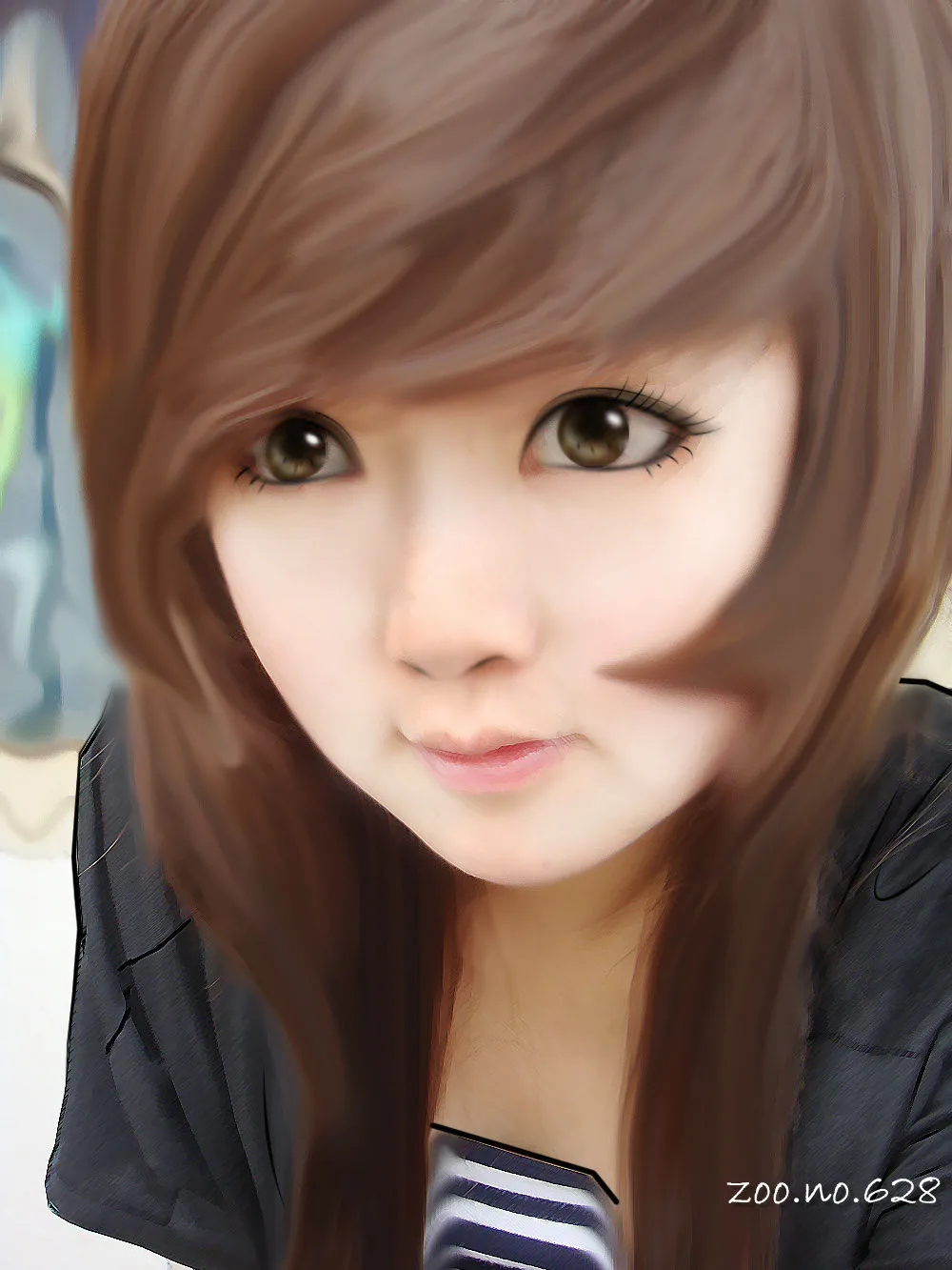 头发丝没处理好,做头发尽量少用液化涂抹之类的,或者涂抹完之后画些发丝上去,不过眼睛处理得很好,呵呵