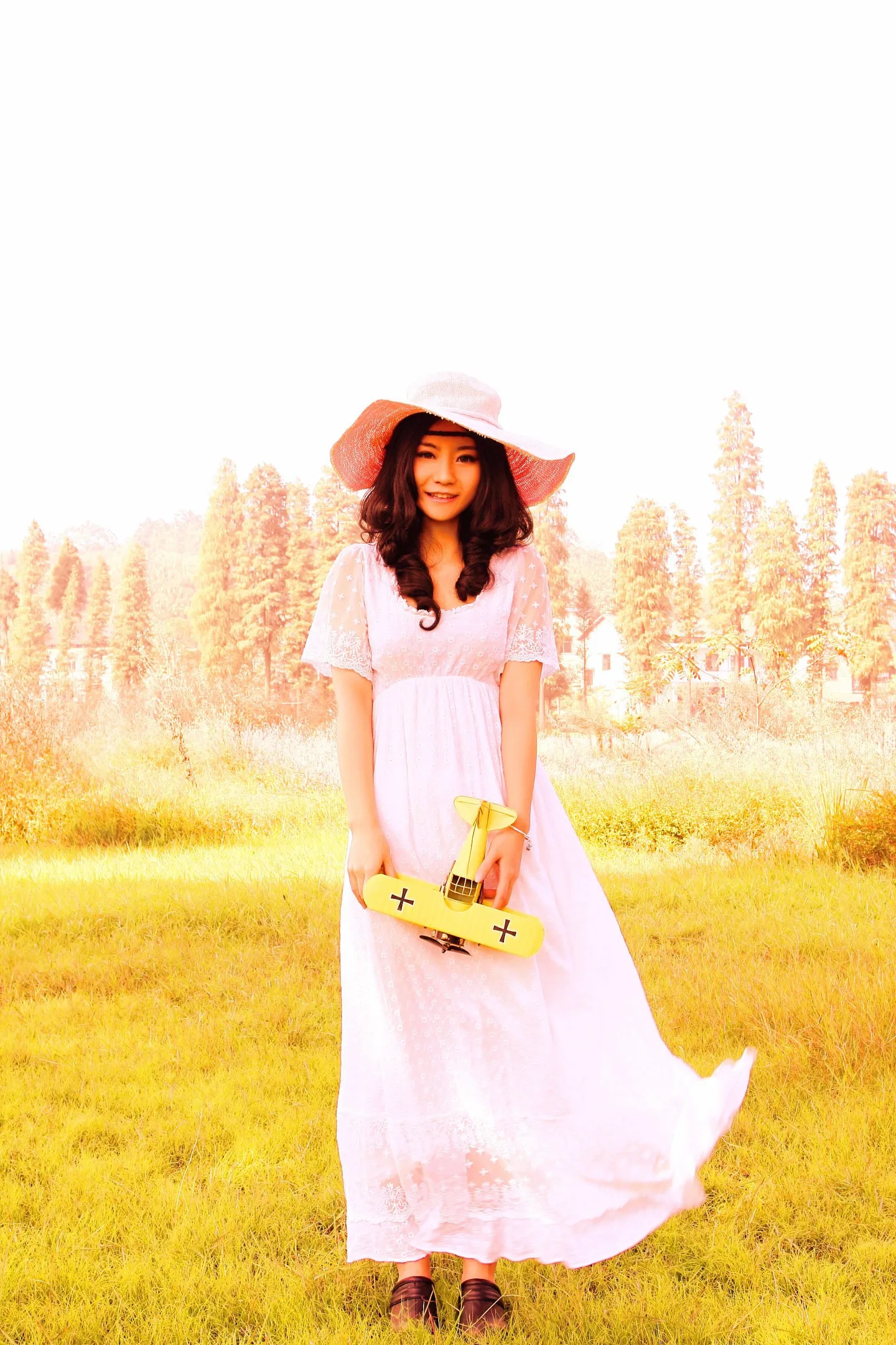 暖色系 田园风格 最好是手绘板处理 帽子 和手上的飞机希望是颜色艳丽 高饱和度的 整体色调暖橘红色 不要加字