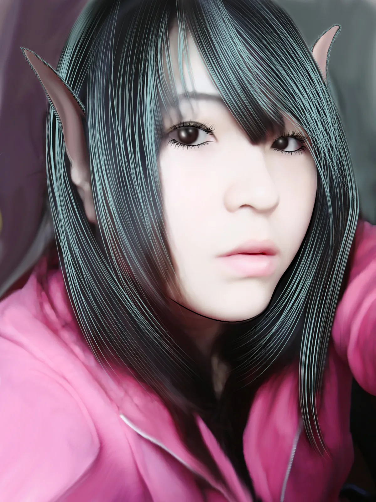 芭比来咯 耳朵很好看呢~睫毛有点点不融合哦 建议用钢笔画 用笔刷总是怪怪~我以前也是用笔刷 被嫌弃了