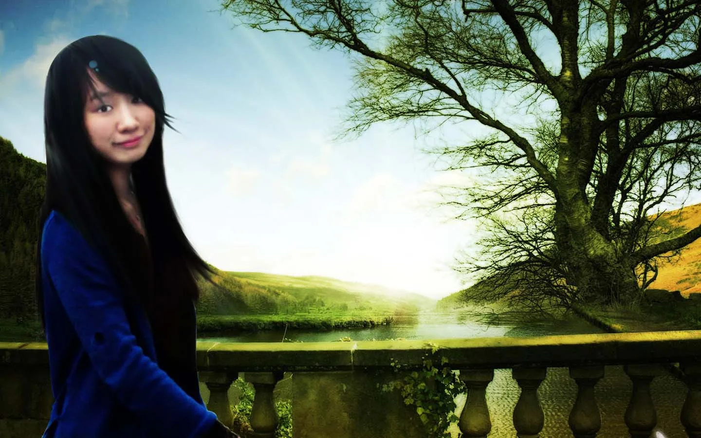 希望背景可以漂亮点,有种云淡风轻的意境。唯美点,有艺术感。谢谢设计师啦。如果可以的话,希望脸部和身材可以做些美好的修改。