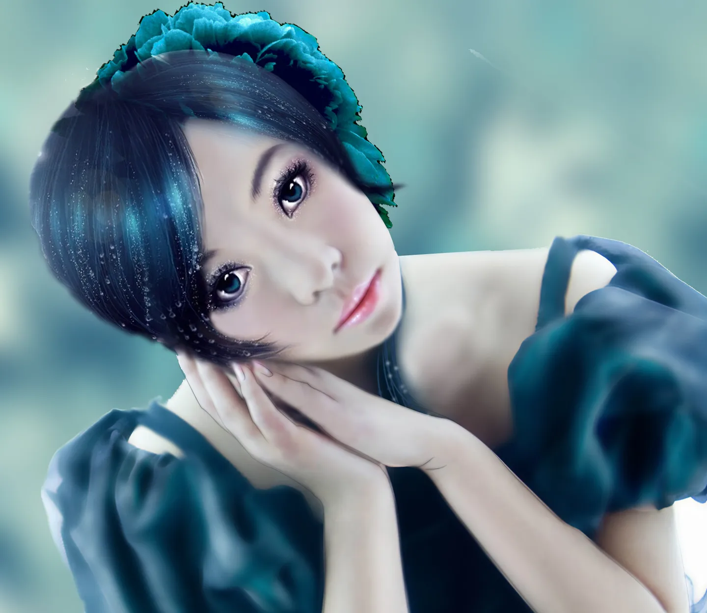 人物头花没扣好