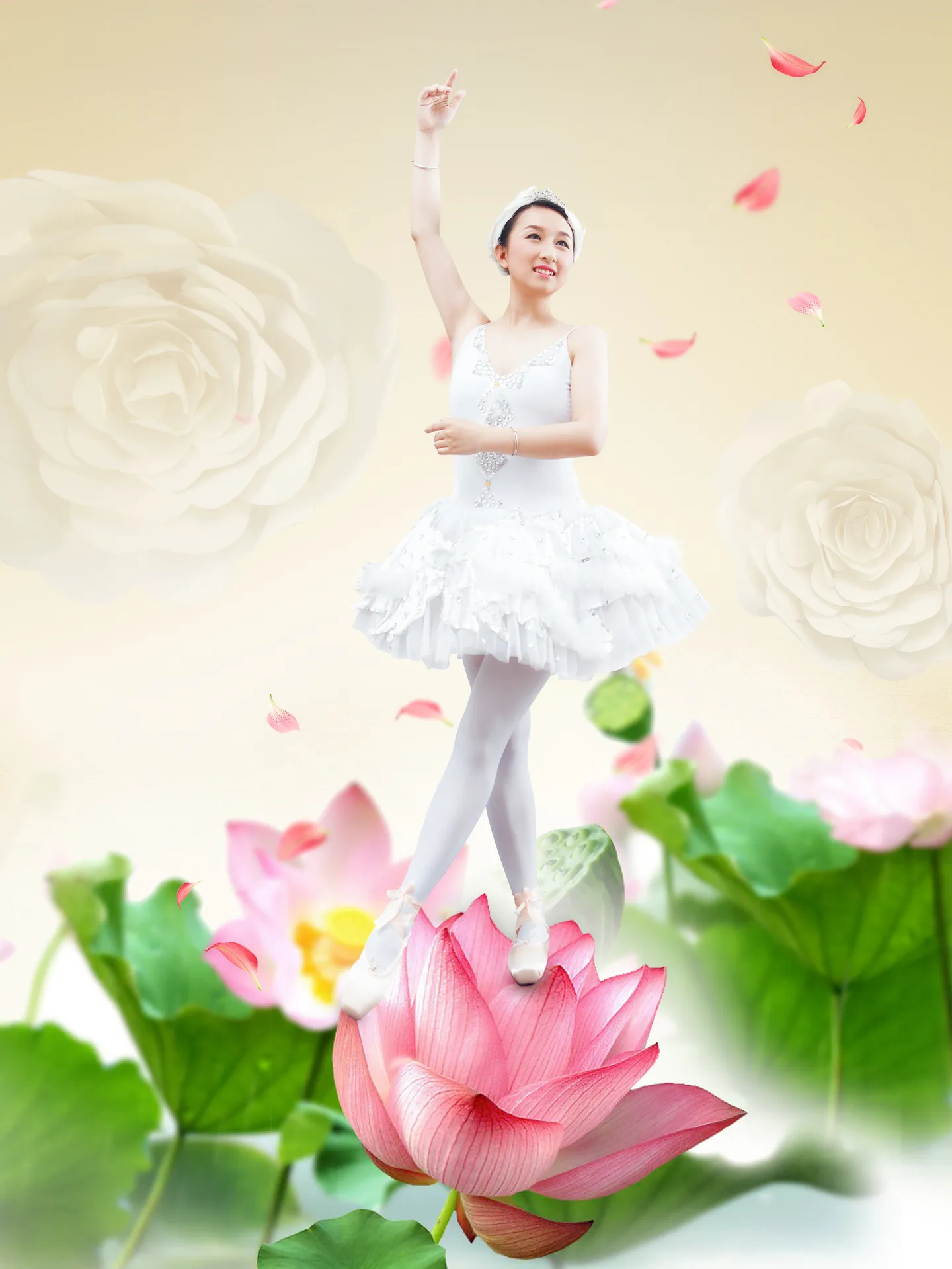 踩着的荷花,换一个打开点的素材更好 (表情)