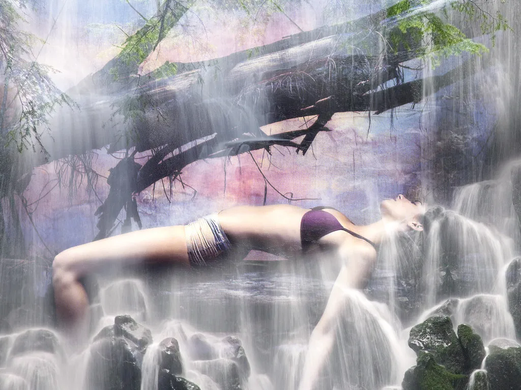 水落在头发上的感觉好自然,真好~~脖子那里的小图看不清楚是流过脖子还是躺着的石头……