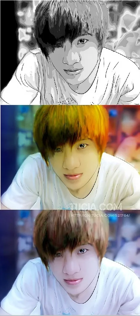 把肤色调亮 背景朦胧、五官清晰 头发漫画感 给人物换一个好看的背景 艺术化:轻微艺术化