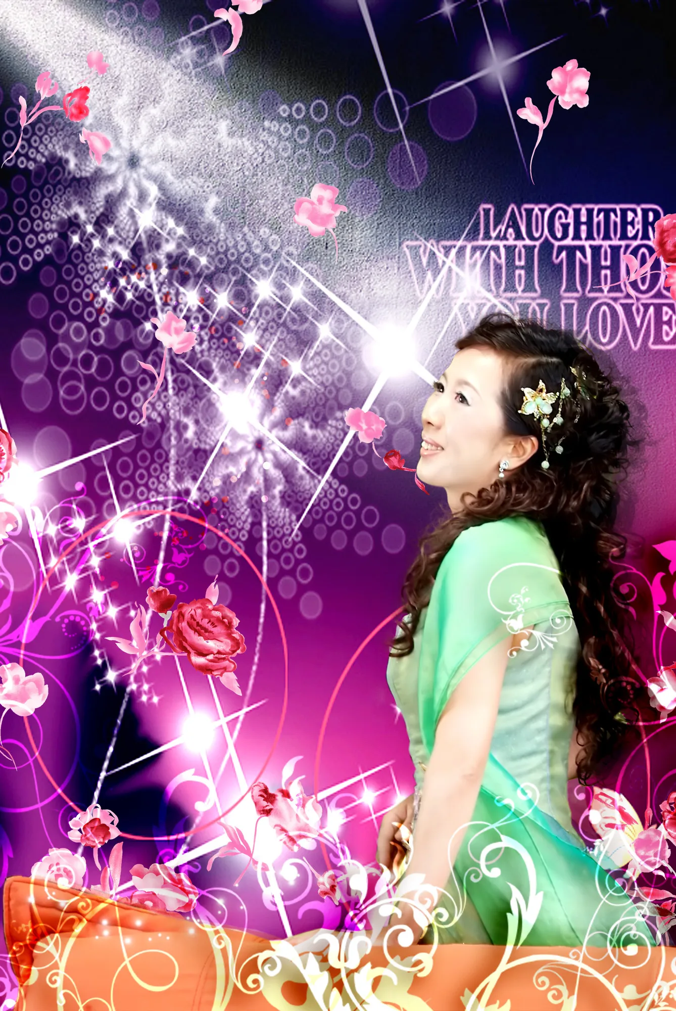 麻烦大师将人修饰一下,尤其是眼睛,最好能将背景换一下,其余的按大师的风格P,谢谢了! 用途:家庭纪念 基调:典雅唯美 艺术化:深度艺术化