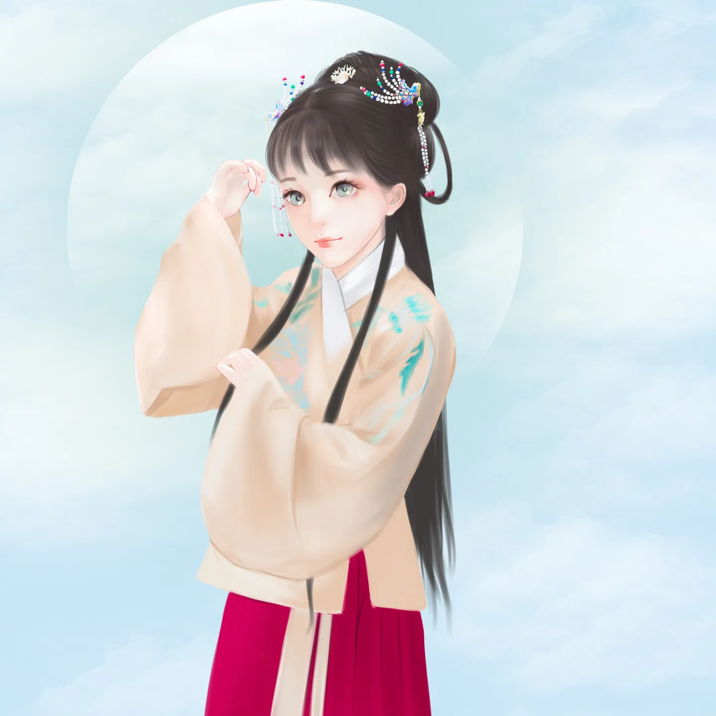 头饰画的好精致,大大的眼睛,背景也超美啊!收到图开心