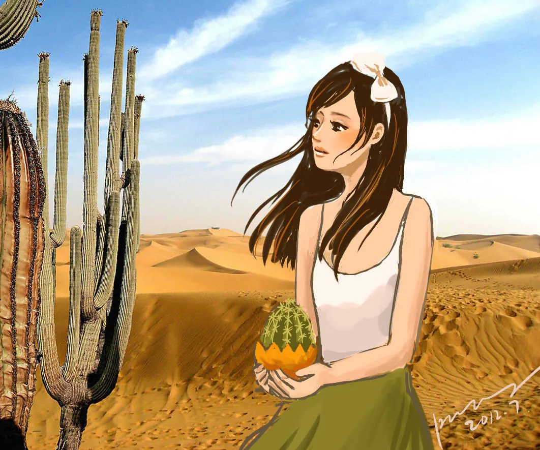 本来想画个沙漠背景的,找了图片参考,结果又偷懒了……直接把图放后面了,算合成吧