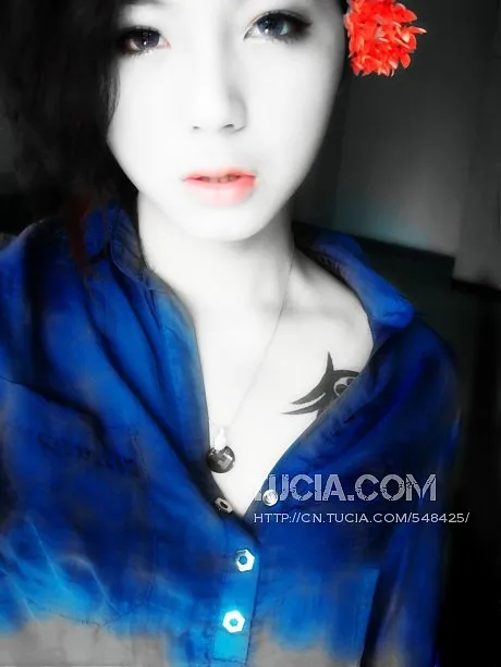拍这张照片时脸晒得很黑,都和脖子不同一颜色了,夹在耳朵旁的花能把它夸张化吗。?谢谢