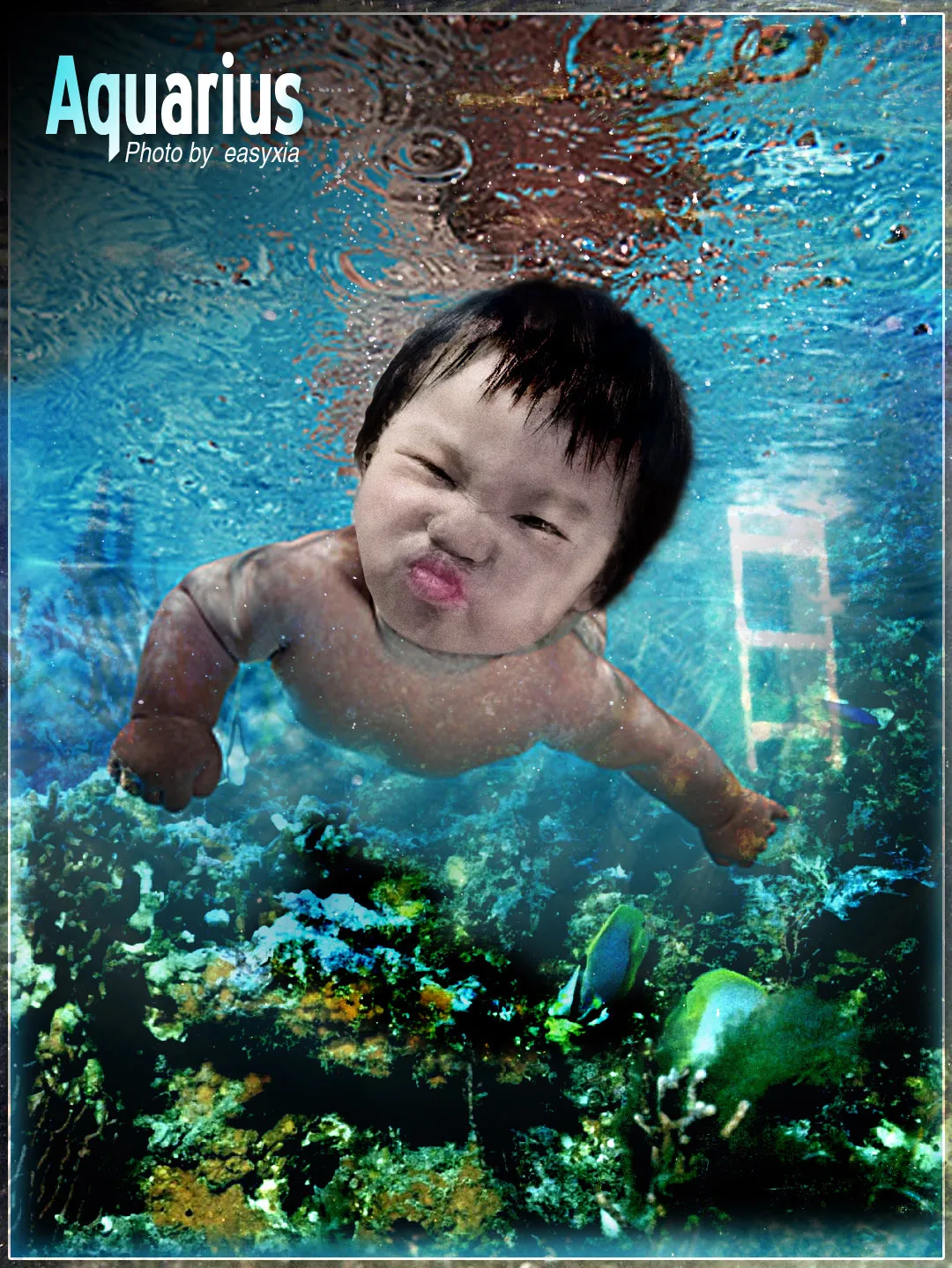 宝宝从来没有下过水 很喜欢小宝宝在水下的照片 希望能p成类似的 呵呵 我是外行 好象很难啊 等待高手了哟 谢谢啊!