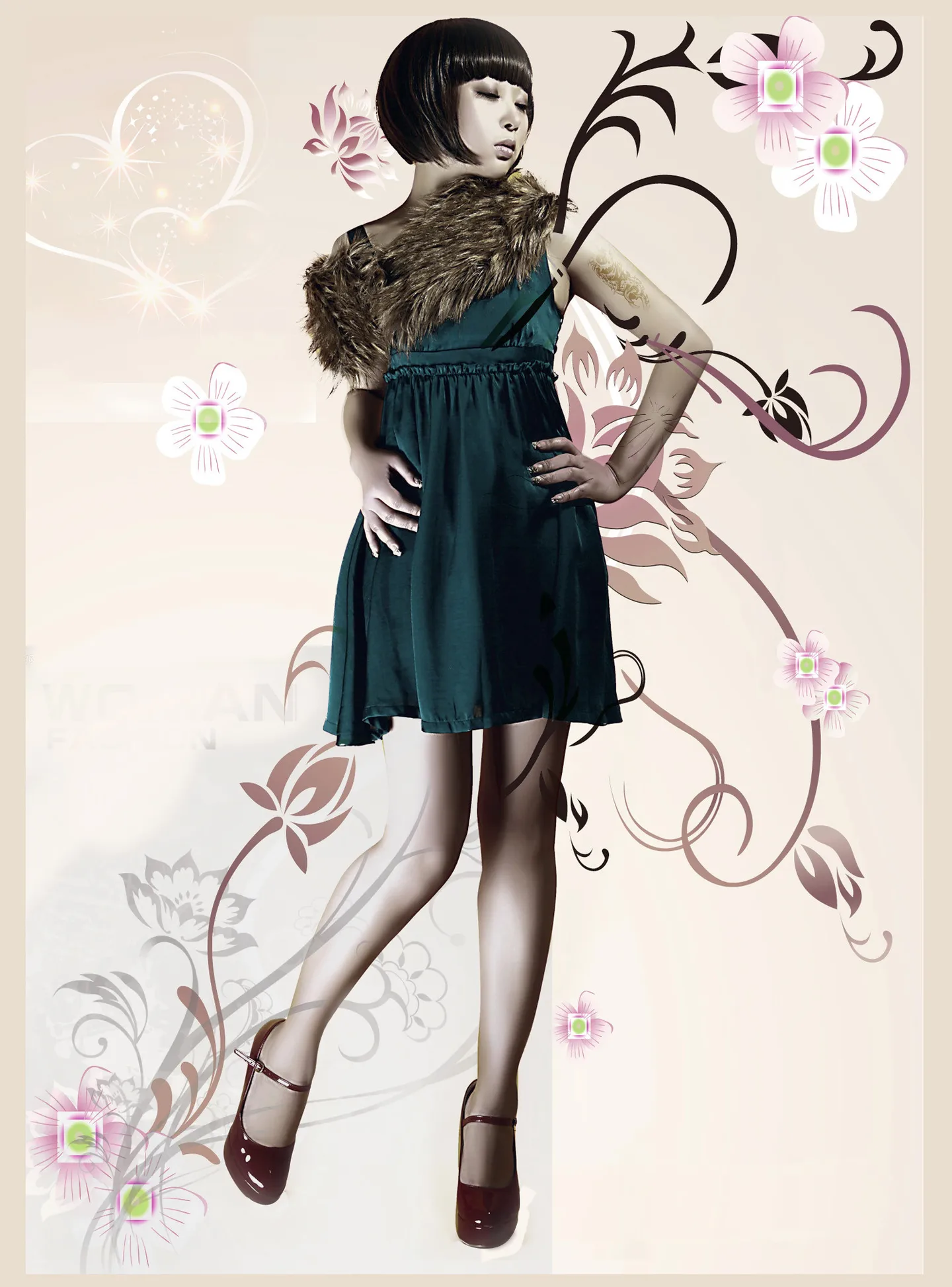 要时尚点的设计。背景不要太花哨的。 美化身材/体型 艺术化:深度艺术化