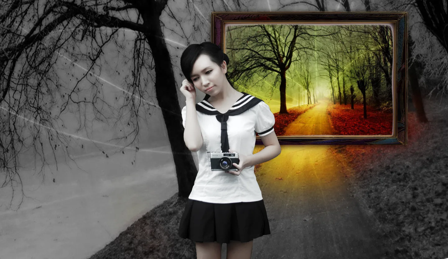 是啊,是啊,是为了呼应手中的相机。恩,被你一说好像真的似乎是前路昏暗的感觉呢。话说回来,我上学的时候觉得自己很牛白,可是...