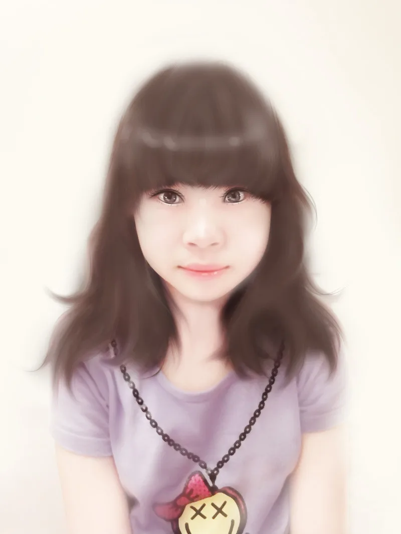 头发我用SAI画的,选取头发颜色,刷上去。。。然后再回到PS里用滴溅笔刷轻轻的涂抹下。。。