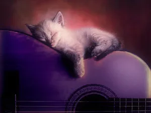 把吉他的色调处理下,将猫显得更突出