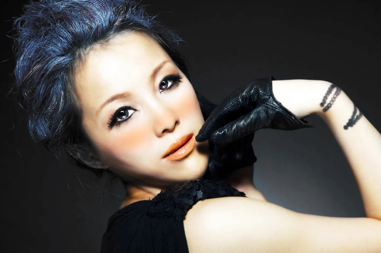 蓝色头发配一抹橙~~嗲的