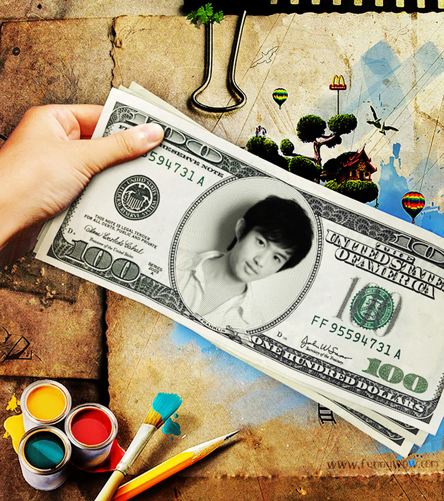 钞票上印个帅哥 哈哈哈哈哈 笑死