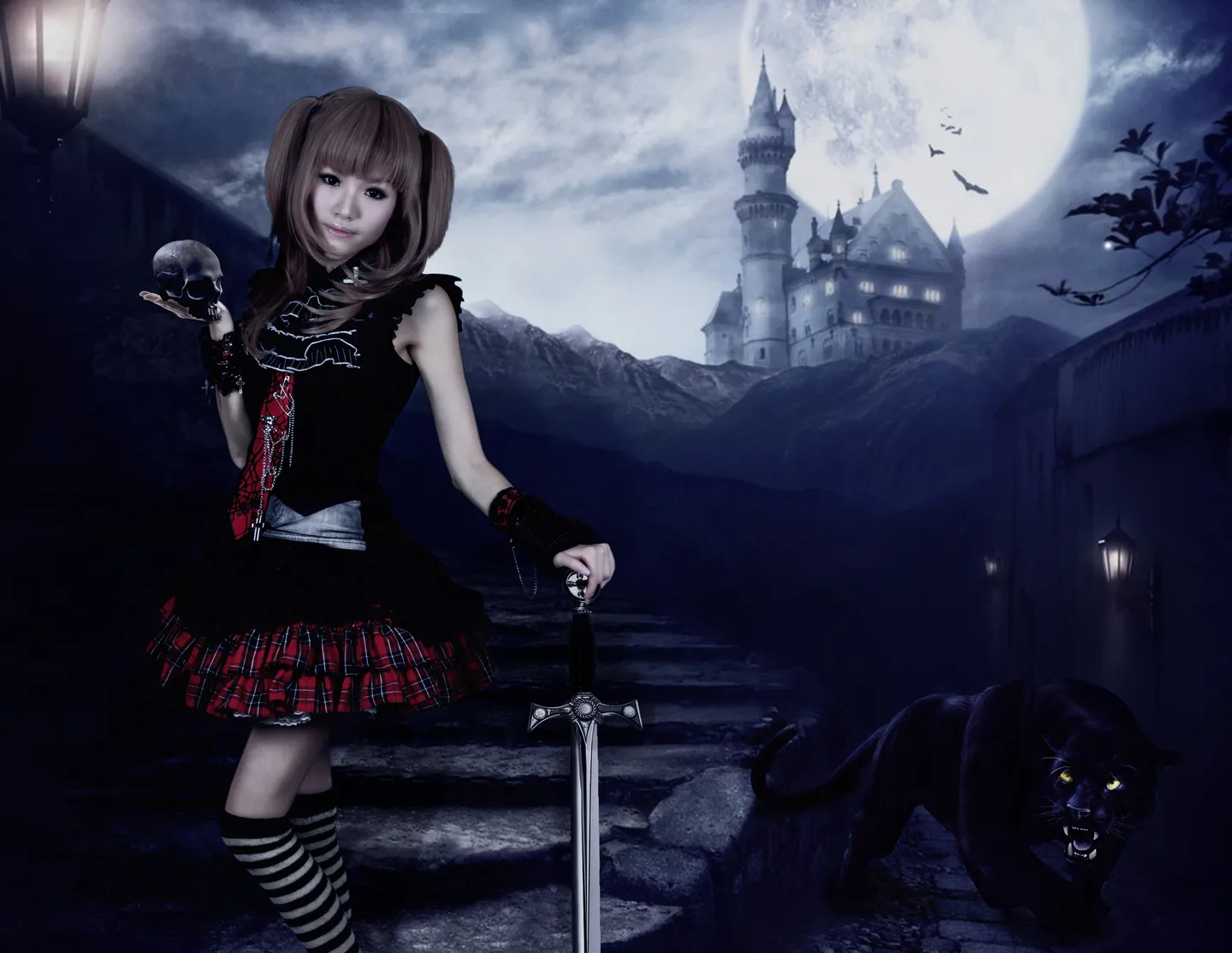 本来我也想接这图的,但是还没找到灵感~!作品整体很不错~!但我有点小意见,人物头发抠图的时候边缘没有处理好,一般我遇到难抠的发丝会截取其他发丝素材,还就是人物衣服一片黑暗,原来的光影没了,如果是这样那骷髅,豹子身上的光影就不合理了~!最后人物原片的手臂有些诡异后期也可以修改一下,谢谢~!