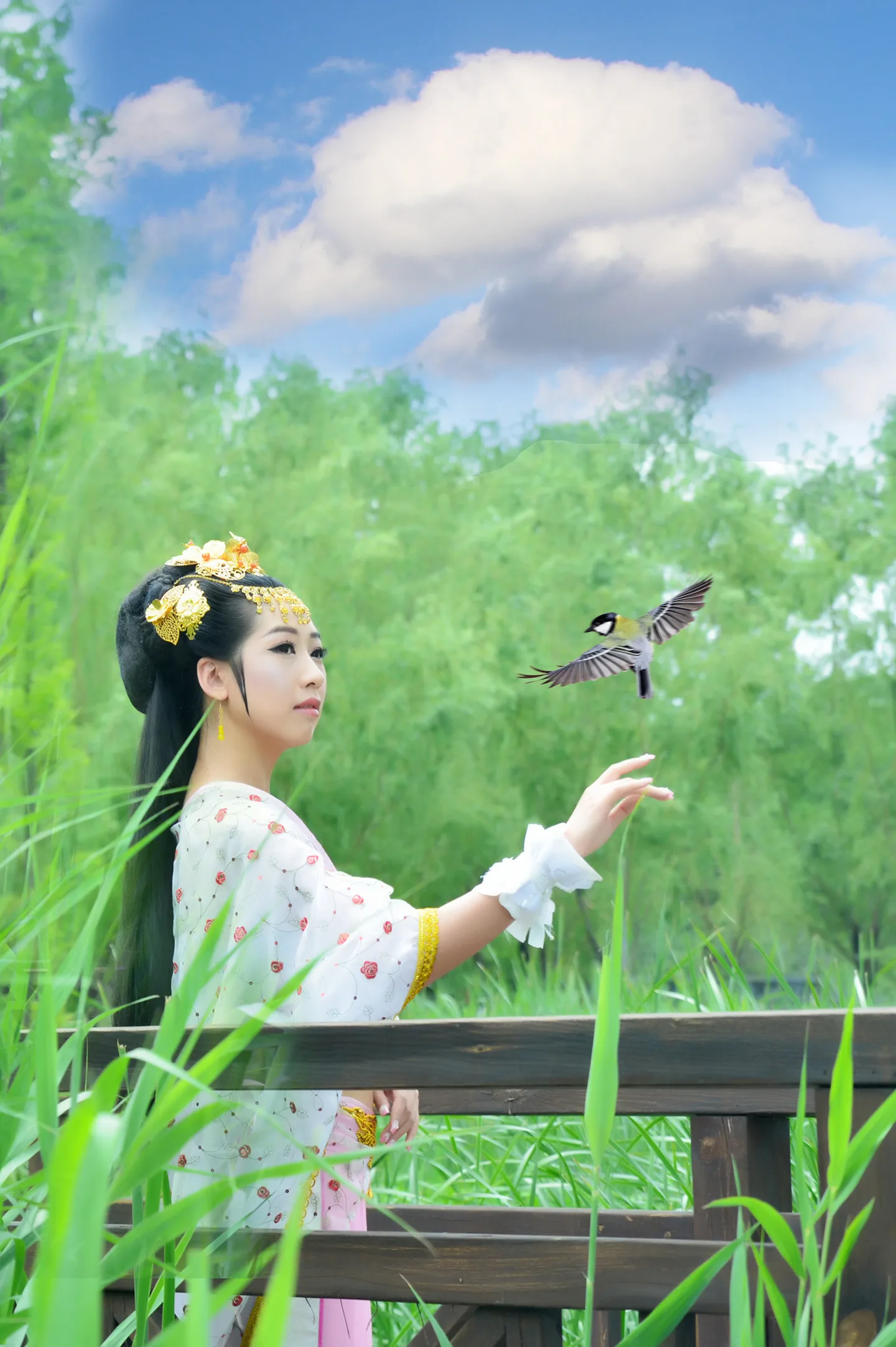 鸟可以抬高点,顺着女主角视线