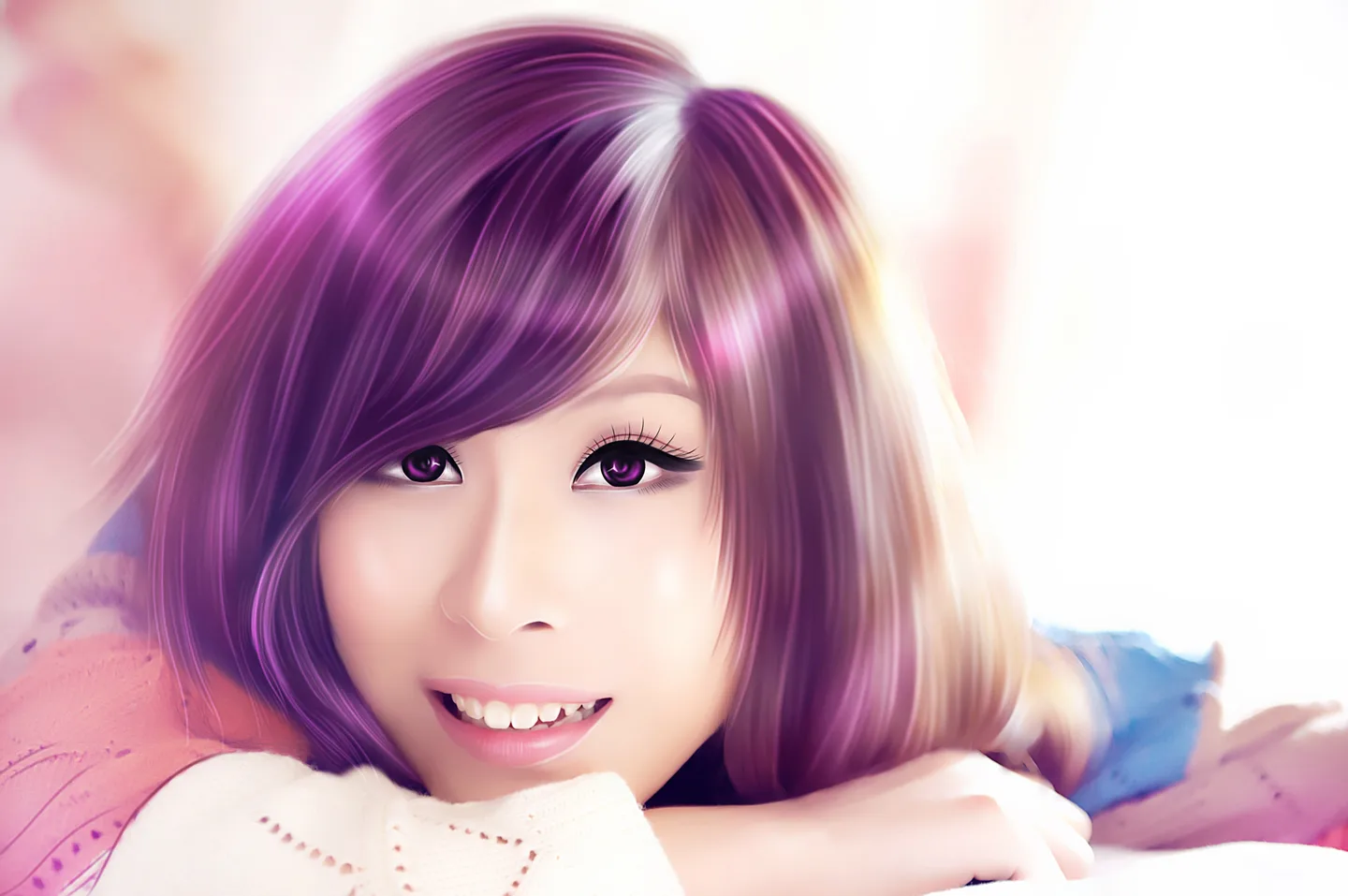 哇哦 ·蓝色 ·好美丽的头发啊 ···乃的技术提升的好快的 ·美死了啊