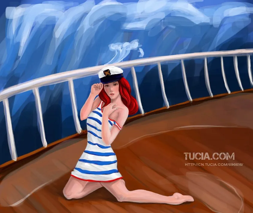 漂亮。衣服画得酷,海军的条纹装。。。。制服诱惑!