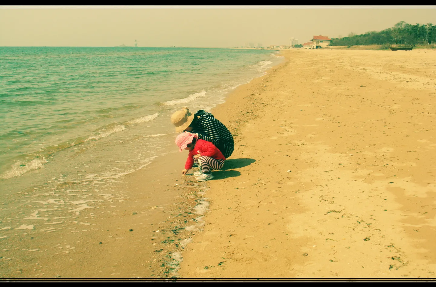 我和闺女在海边捡贝壳,调色高手来吧!