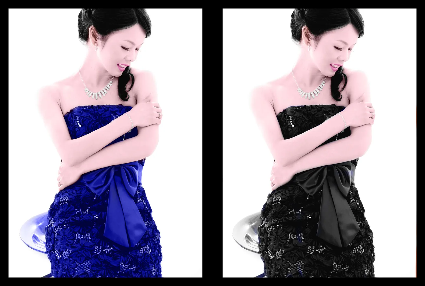 恢复成彩色照片,并修瘦。蓝色礼服原色如图http://cn.tucia.com/pic/raw/grid/201204/1334381872888.jpg