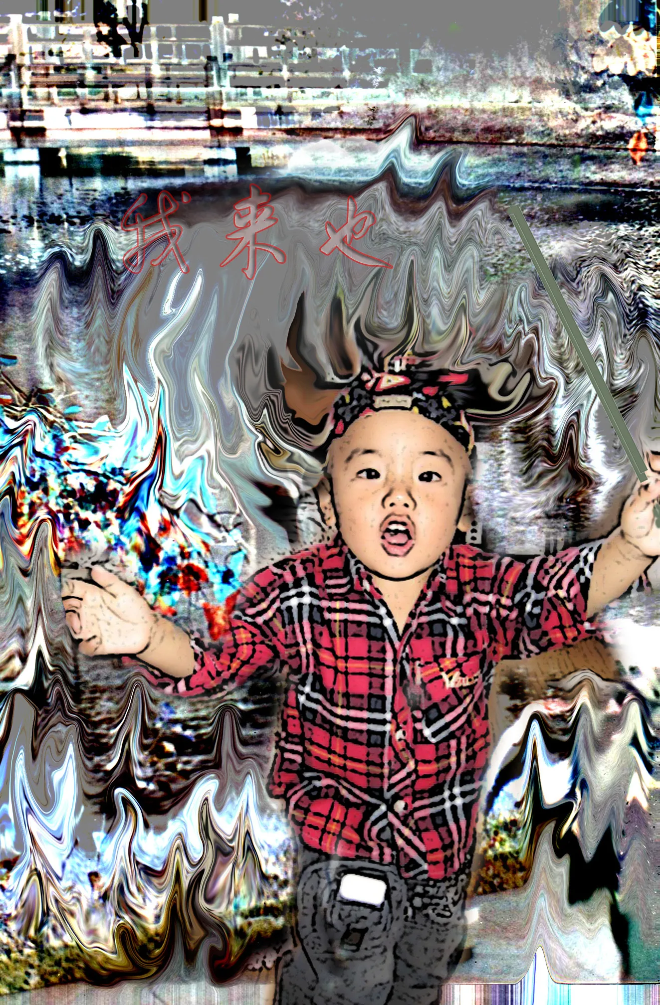 给人物换一个好看的背景!在把小孩处理的卡通些,谢谢了!