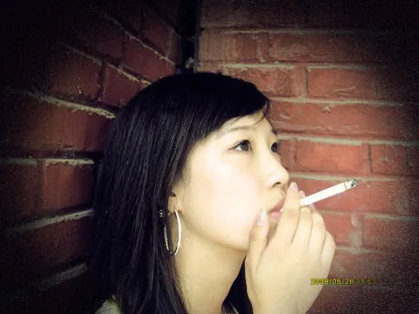 看这姿势这MM不会抽烟