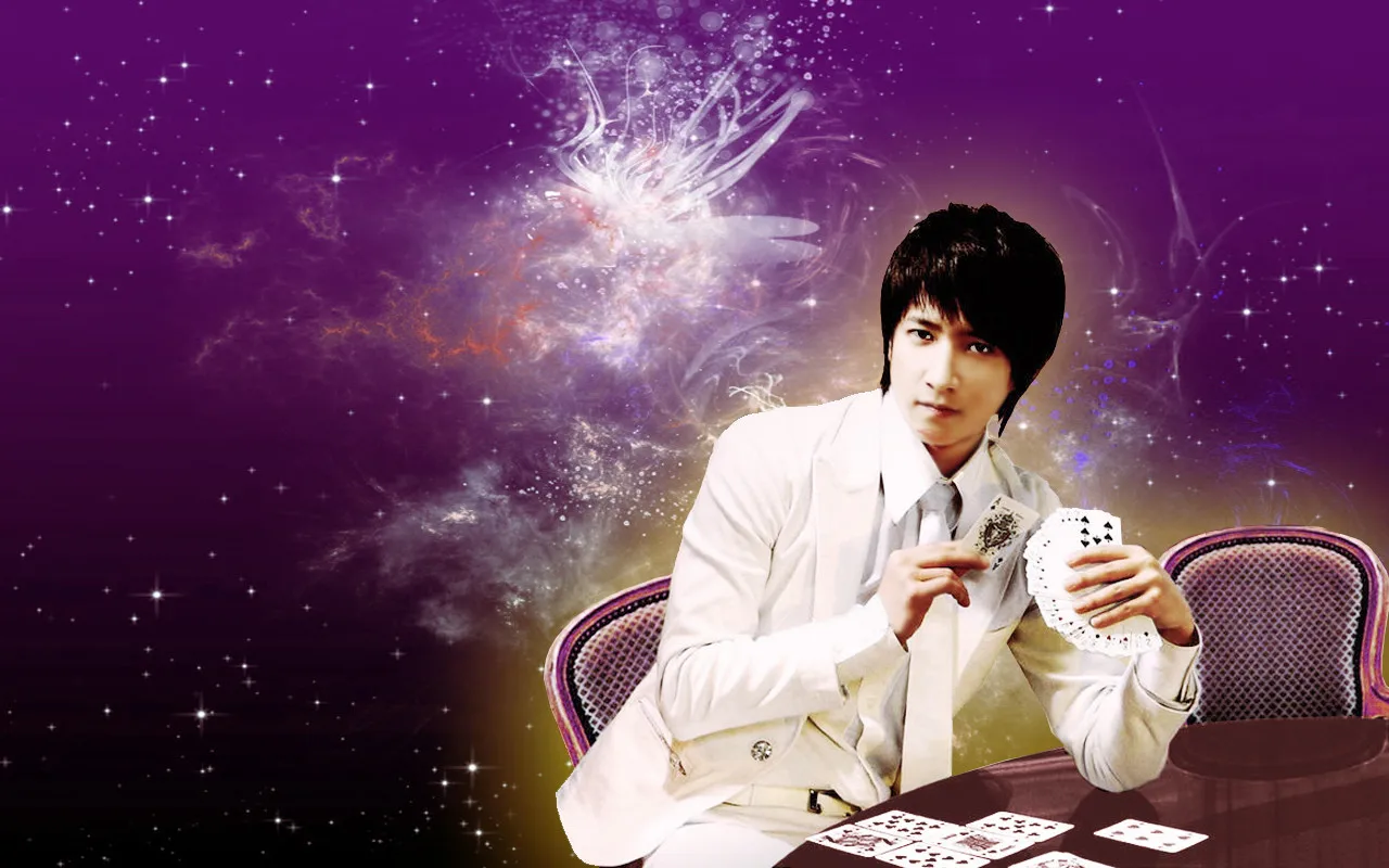 想要做成电脑桌面 1280*800的规格 背景可以换掉,但是保留魔术感觉吧 毕竟韩庚拿着扑克牌捏 谢谢大师啦~~~