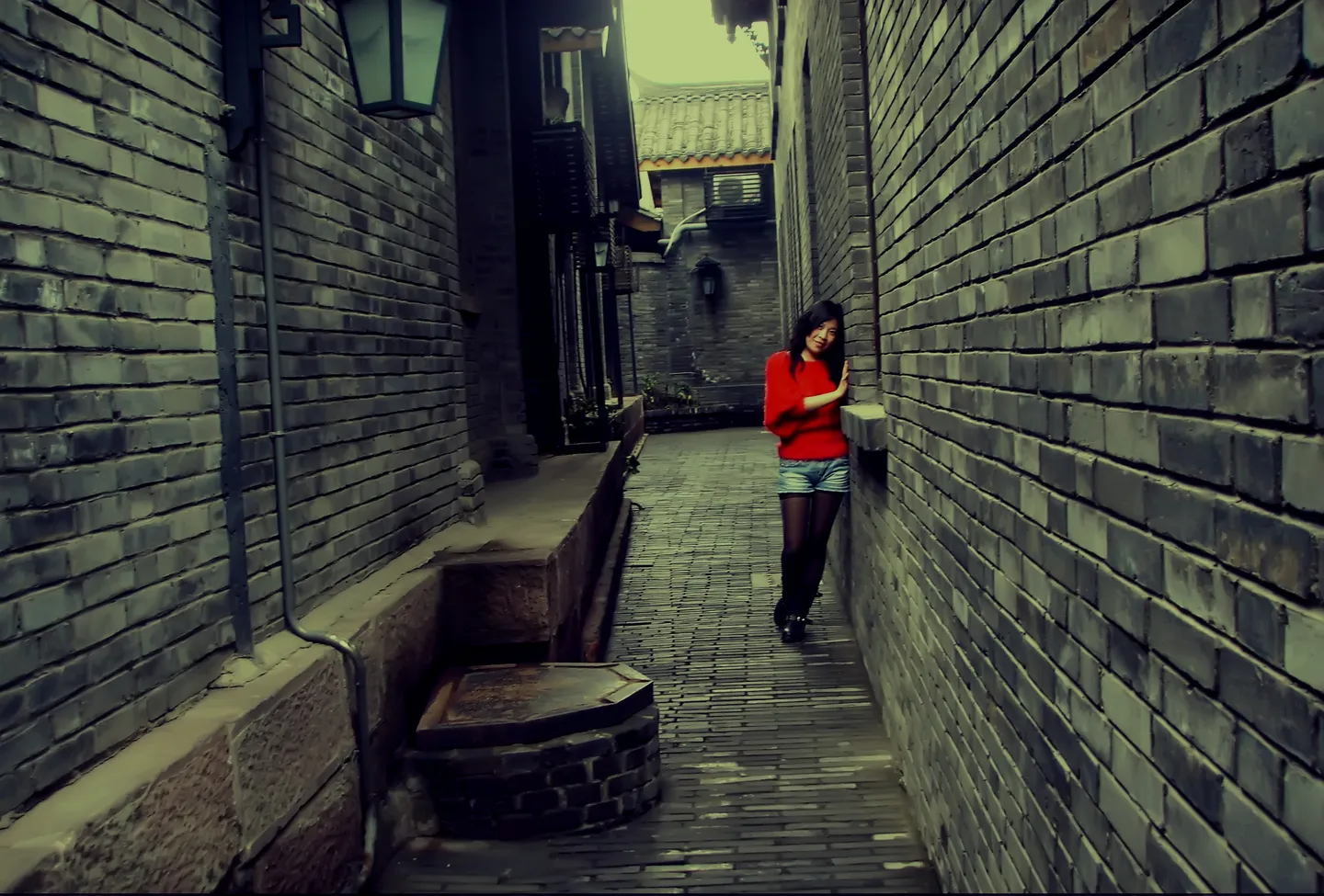 眯着眼睛看