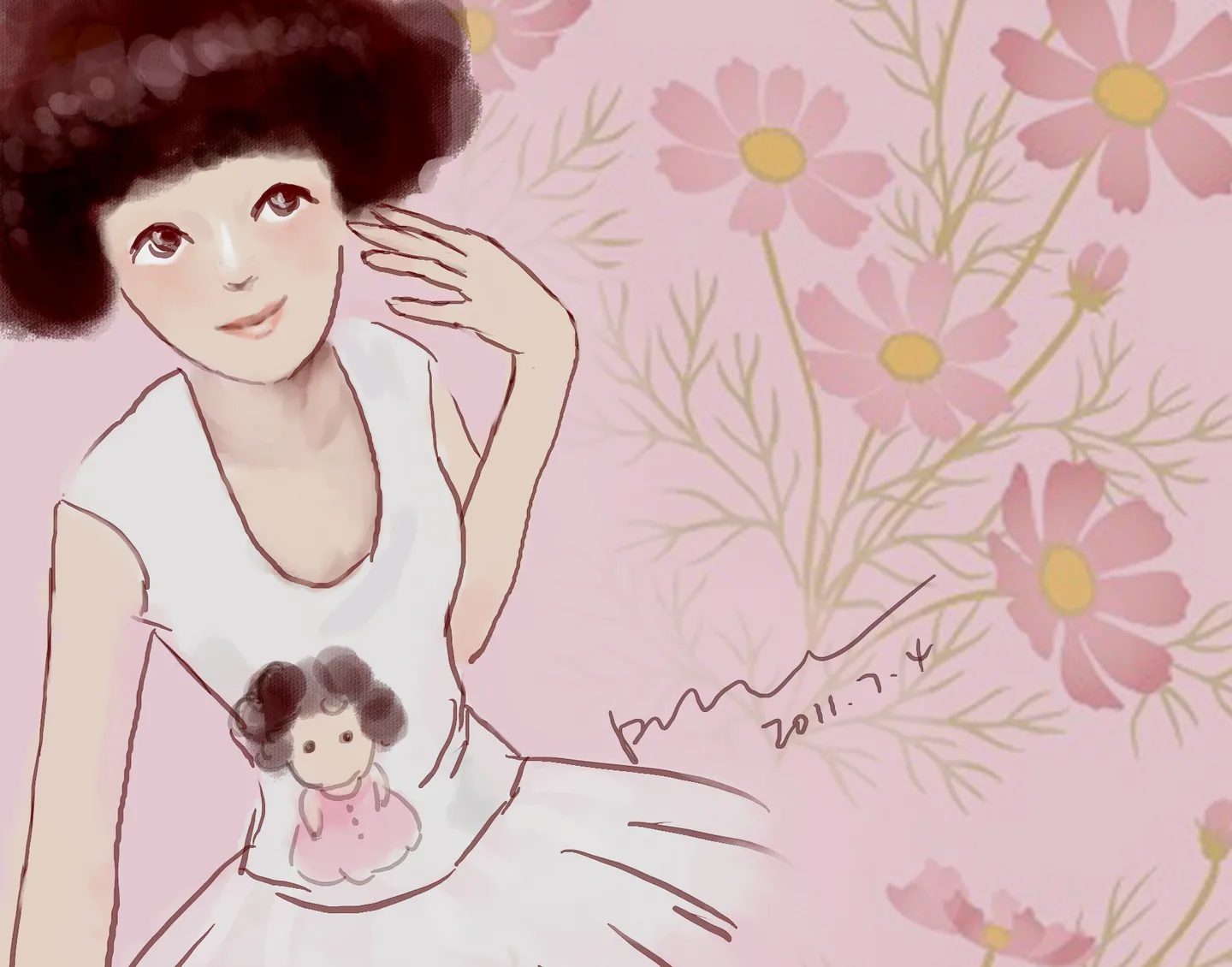 打开PS,新建一个画面,填个底色,找个笔刷,开始涂,涂涂改改…… 就这样就画成了