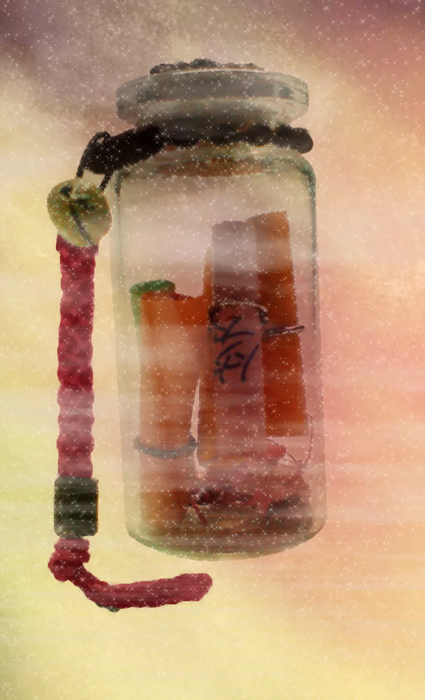 发挥你的创意吧 1.有梦幻的感觉 2.(重要)突出里面的那个“笑”字,左边的绳子是粉红色的 3.弄清晰点! 薰衣草的花语---等待爱情! thx!