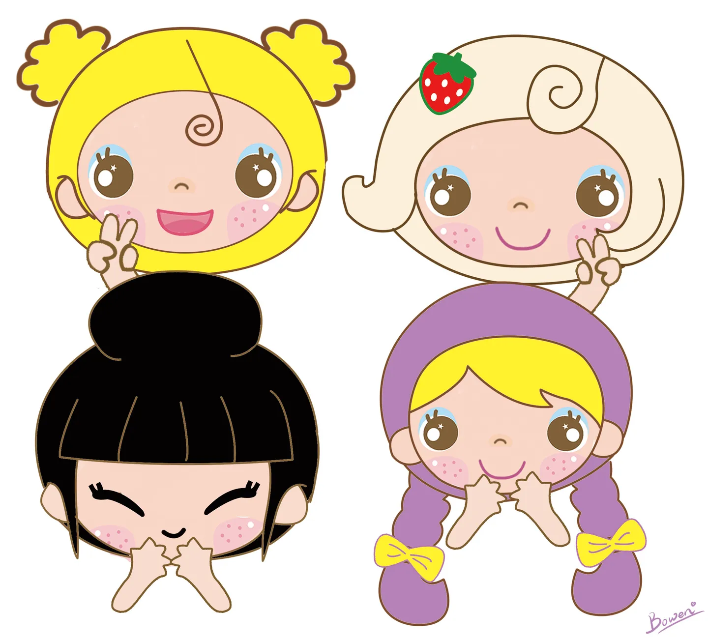 嘿嘿····亲爱的···俺寝室的四个妞···想用做电脑桌面 ···画出每个人的特点啊!嘿嘿···谢谢啦···么
