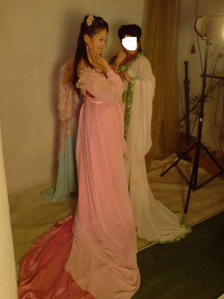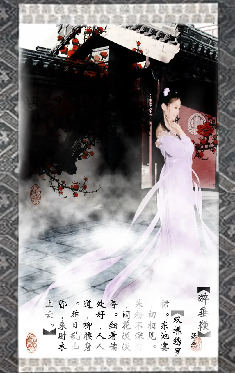 能不能把前边穿粉衣服的套索出来,设计一个唯美点的背景?随机照的这张照片没有考虑好背景和角度,太随意了。。。 基调:典雅唯美