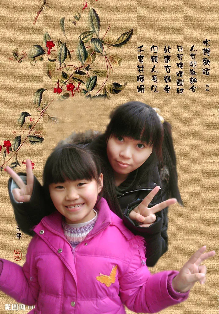 把脸弄白一点,瘦一点。,换个好看点的背景,最好复古一点的。。 基调:欢悦明快的 用途:家庭纪念