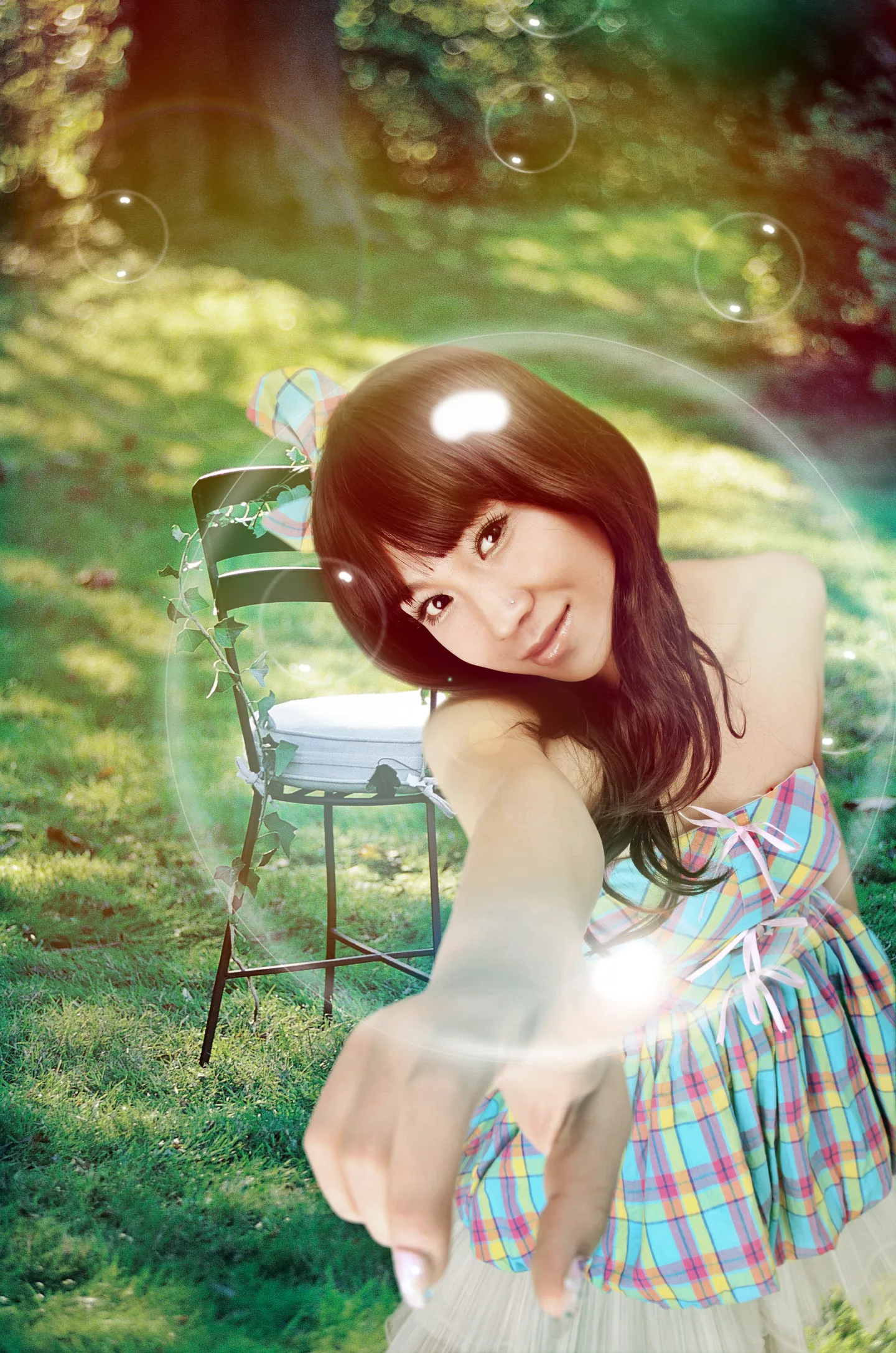 小格子裙子 真可爱