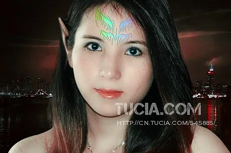 感觉那个头饰有点突兀了~~淡一点会比较好 做成纹身的感觉~