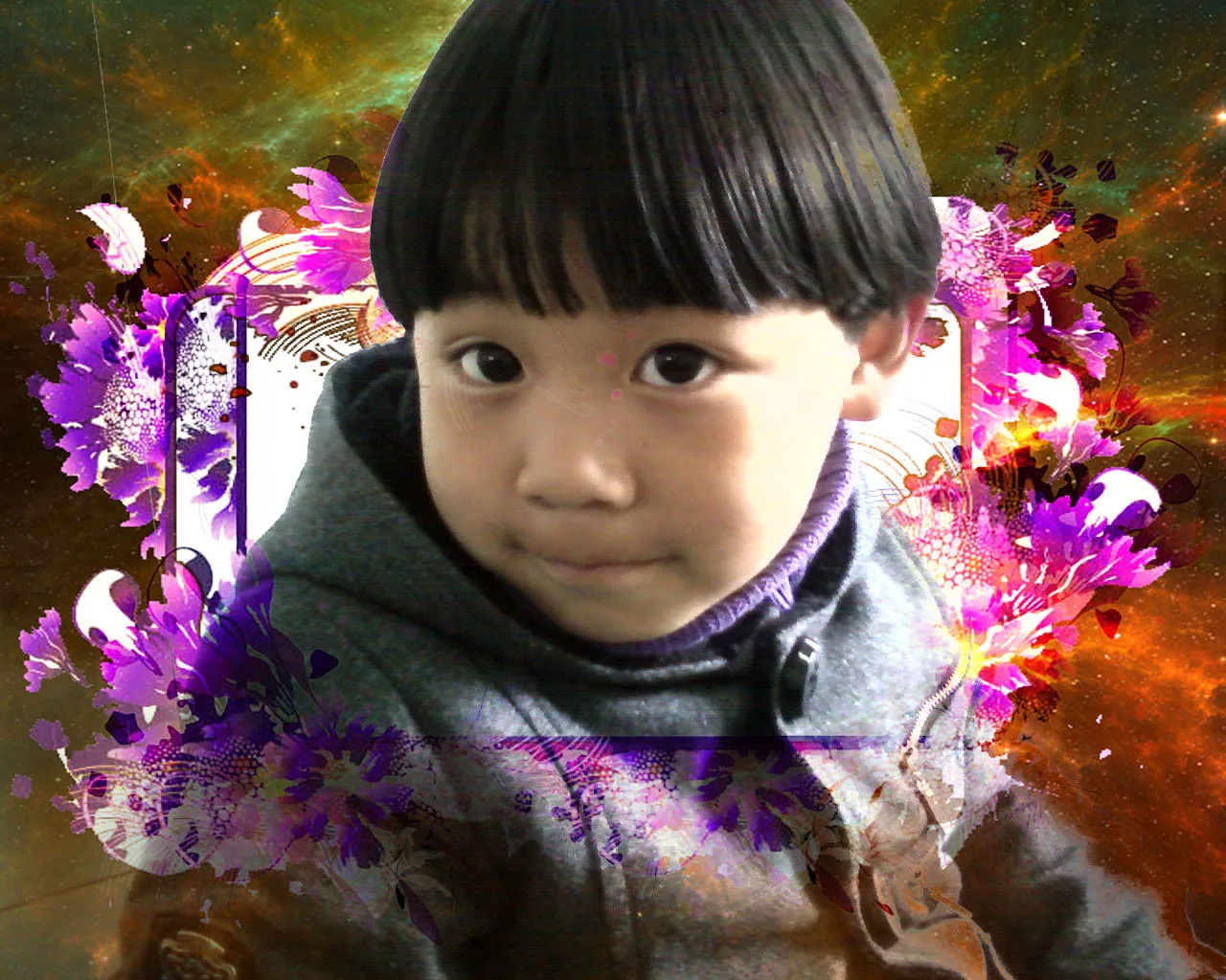 调色。。换个可爱些的背景 给人物换一个好看的背景 用途:家庭纪念