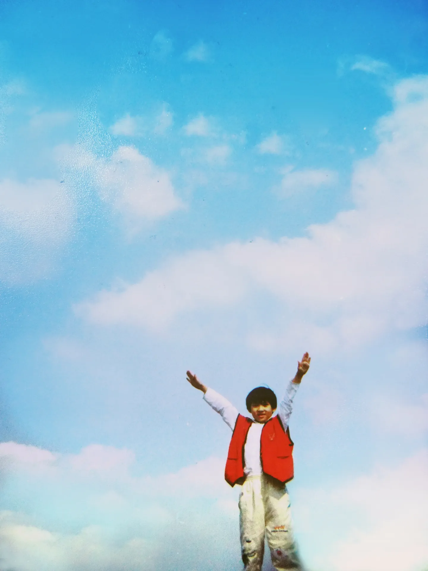 无意在抽屉翻出来的,爸爸以前给我拍的。蓝天白云~ 因为胶卷曝光还有污渍,希望帮我修复,,感谢了!