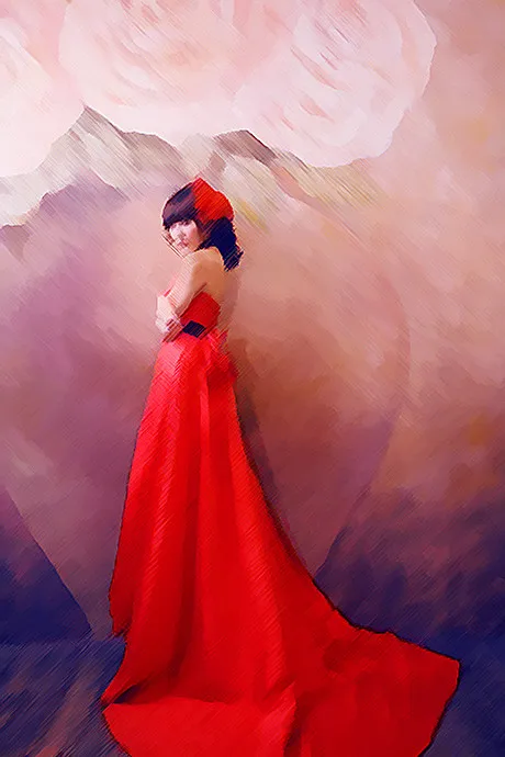 毛片来着~~红色礼服色调不要改变 希望能P的有油画的感觉~