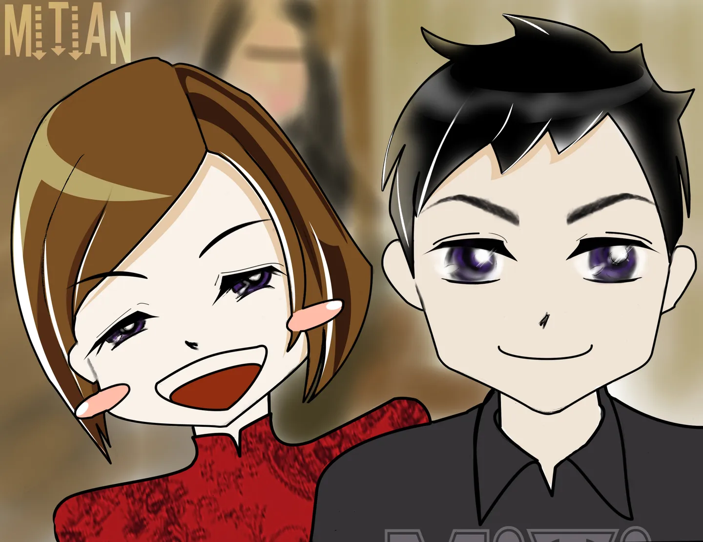 米田亲。。。喜欢你的风格哦。。有时间就帮我画吧。。这次来个可爱风格的。。亲亲