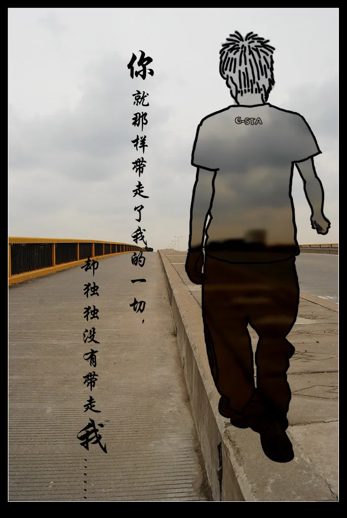 换背景,转写实手绘,排字“你就那样带走了我的一切,却独独没有带走我..”高手进,这张图对我很重要,谢谢