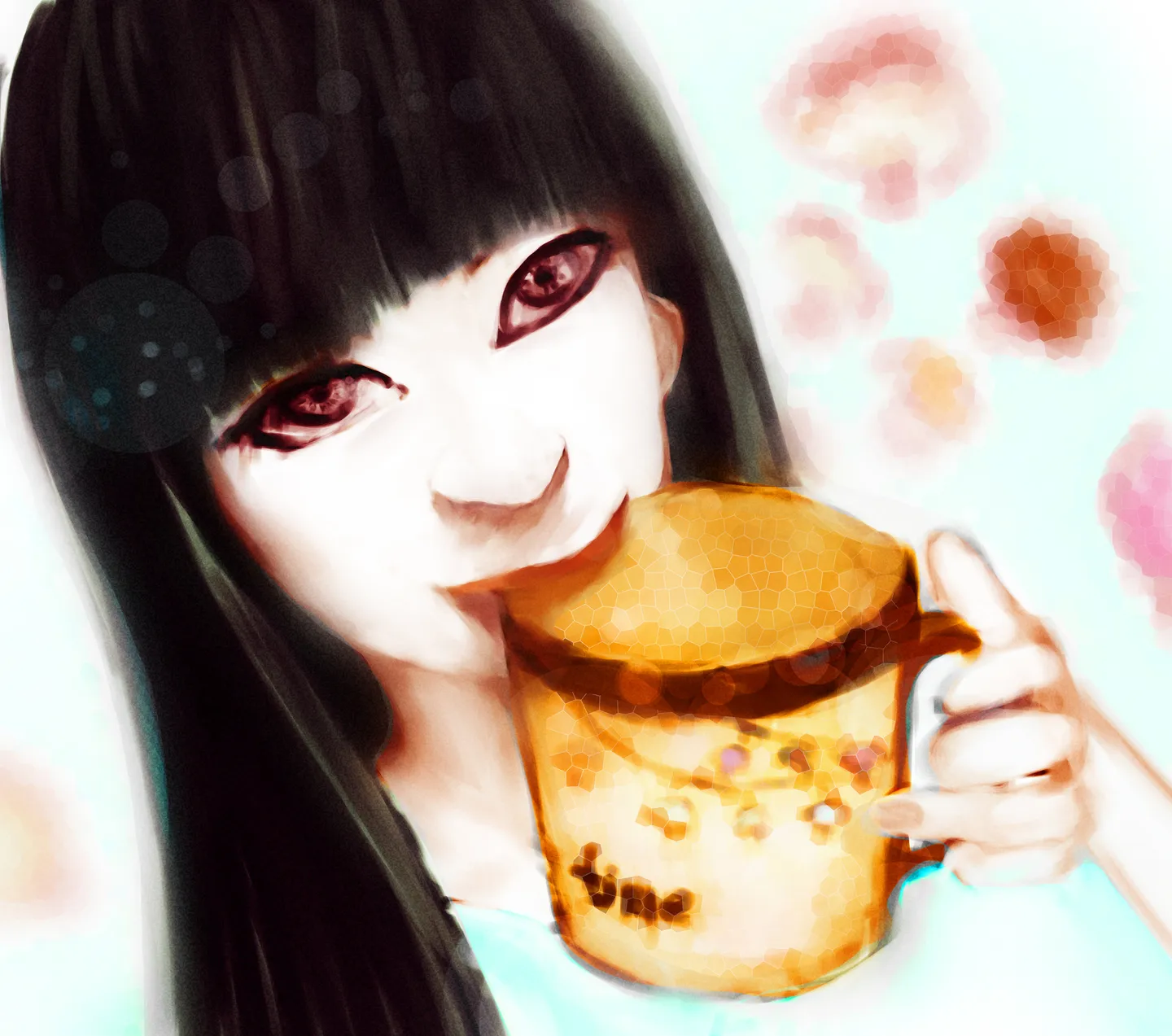 新买的杯子~~求个手绘呀~~上面挂滴小蘑菇 背后是只可爱滴小猴子~嘎嘎~~