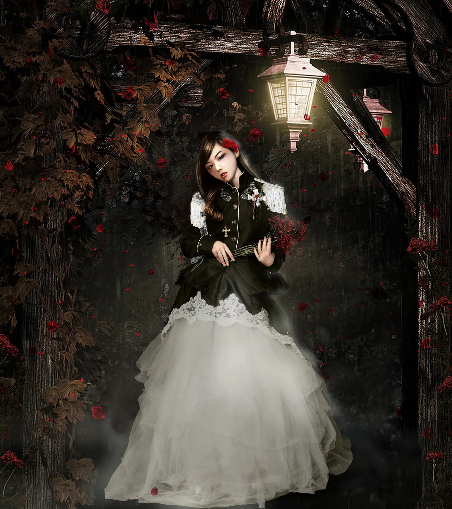 飘落的玫瑰花瓣~~~和传闻中的透明裙子边边的处理 ~~ 尼玛这黑暗中摇曳的红色显得哥是那么的有气质!!!!